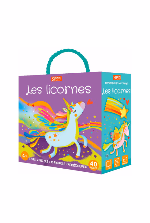 Coffret Les licornes Puzzle, livre et 10 figurines Sassi