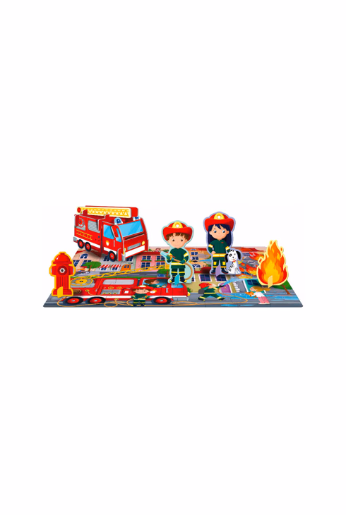 Coffret Les pompiers Puzzle, livre, maquette et figurines Sassi